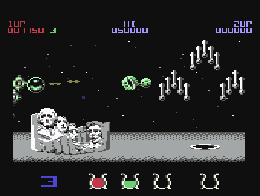 | Big, smooth and fast. Great variation. Themed backdrops and hazards. Lovely colour drops. | Great title tune and sound effects (all are original) giving the right mood. Sometimes as though someone is playing a synthesizer right next to you (referring to the game over tune). Galway at his best. | Nope, no wild blasting. There is some thinking to be done here. The need to fill the cauldrons and to colourize your world keeps you going. Fluid gameplay. The only downside is the sub-game after you visited the wizard. Gets repetitive after a while. | A C64 classic. It's still very original even after those many years. The best 8-bit version (beats the Amiga version too). |